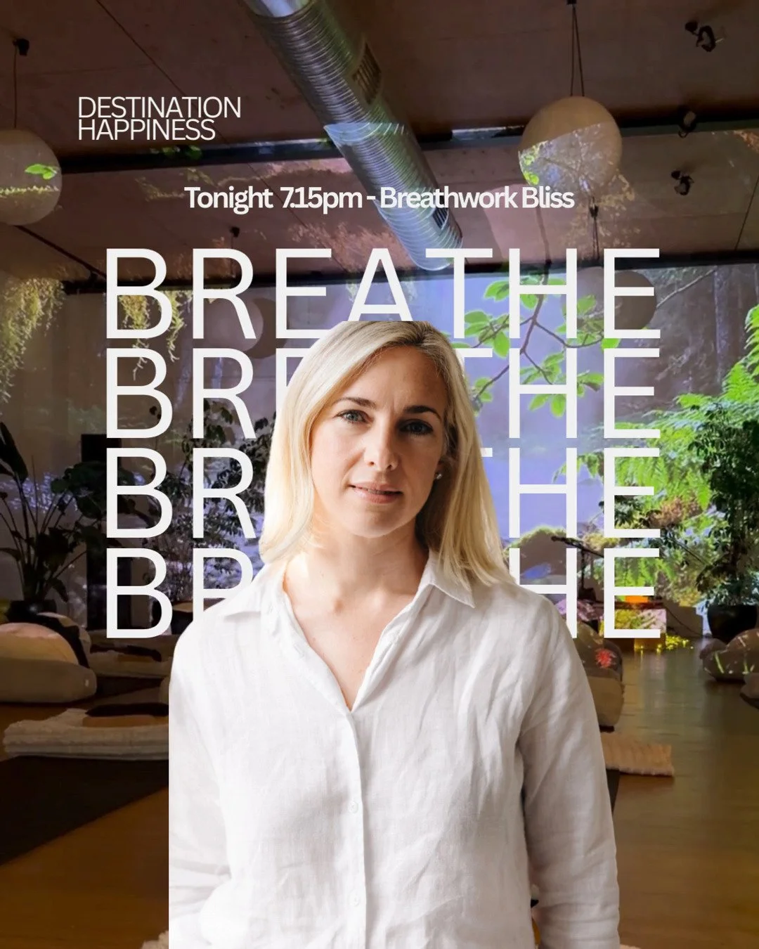 Join me for Functional Breathwork every second Wednesday at Destination Happiness. - Book Here